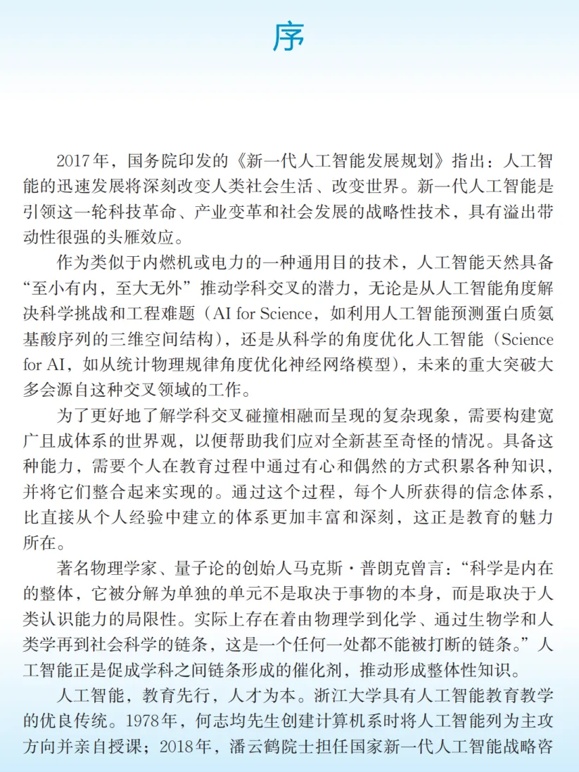浙江大学“新一代人工智能通识教育系列教材”不仅涵盖了人工智能的基础知识,还注重培养学生的实践能力和伦理意识,为新时代的人才培养提供了有力的支持。