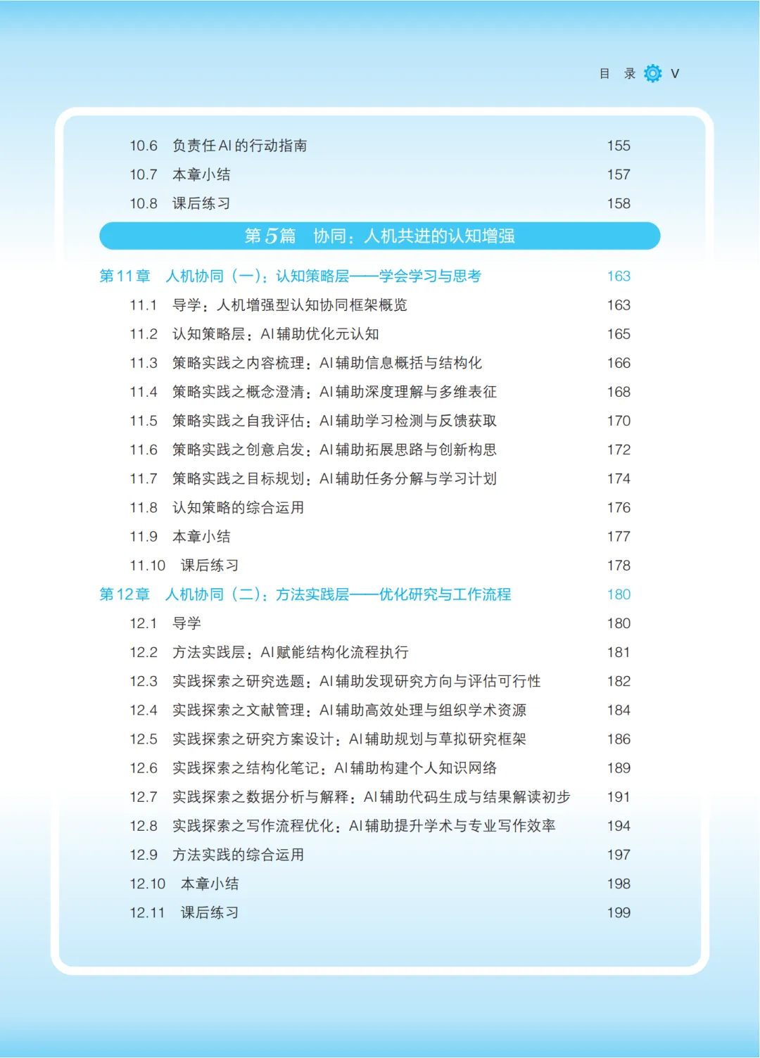 本书致力于帮助学生理解和掌握人工智能大模型这一前沿领域的核心概念与应用方法,培养其作为未来创新者所必需的AI素养,重点介绍了人工智能大模型的基本概念、能力边界及其高效的使用方法等。全书分为5篇,第1篇包括第1-2章,旨在引导读者认识这个新的智能时代;第2篇包括第3-5章,系统介绍了大语言模型的技术基础、核心能力、固有限制以及提升性能和构建实用应用的主要方法;第3篇包括第6-7章,探讨了当前人工智能最具活力的应用领域——人工智能生成内容与智能体;第4篇包括第8-10章,系统介绍了驾驭AI所必需的核心技能与规范意识;第5篇包括第11-13章,聚焦于人机增强型认知协同框架,深入探讨了AI如何在不同认知层面为学习者和研究者提供支持。