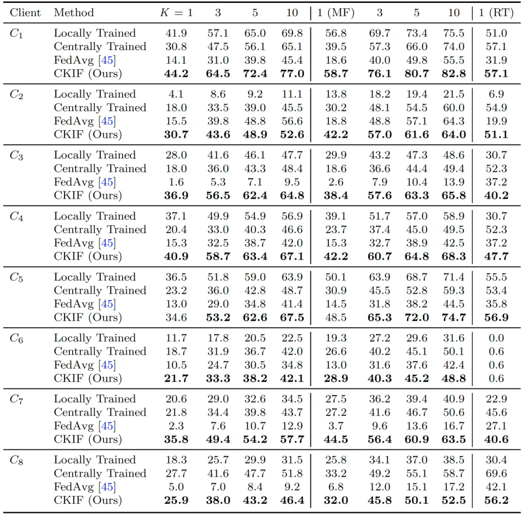 为评估CKIF在数据丰富环境中的有效性,研究在数据规模更大的USPTO 1k TPL数据集上开展了实验。结果表明,即使各参与方本地数据充足、“本地化学习”模型已展现优异性能,CKIF仍能带来显著提升。该结果说明,CKIF不仅适用于数据受限场景,亦可在高数据量条件下作为通用增强机制发挥作用。