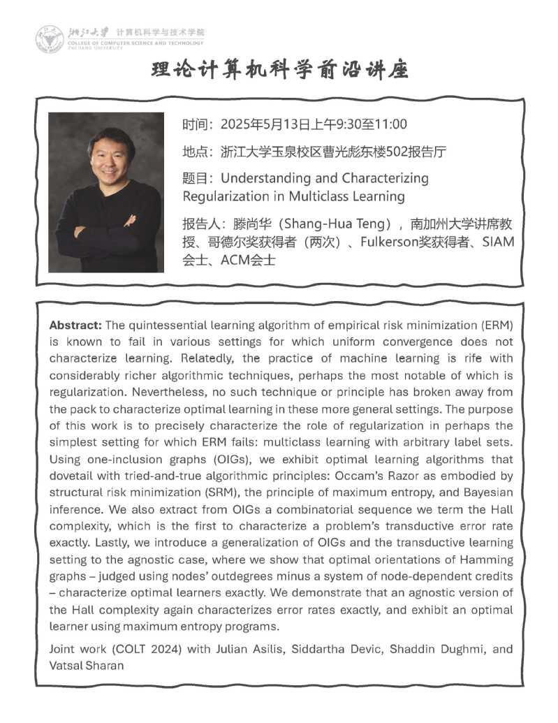 滕尚华:Understanding and Characterizing Regularization in Multiclass Learning